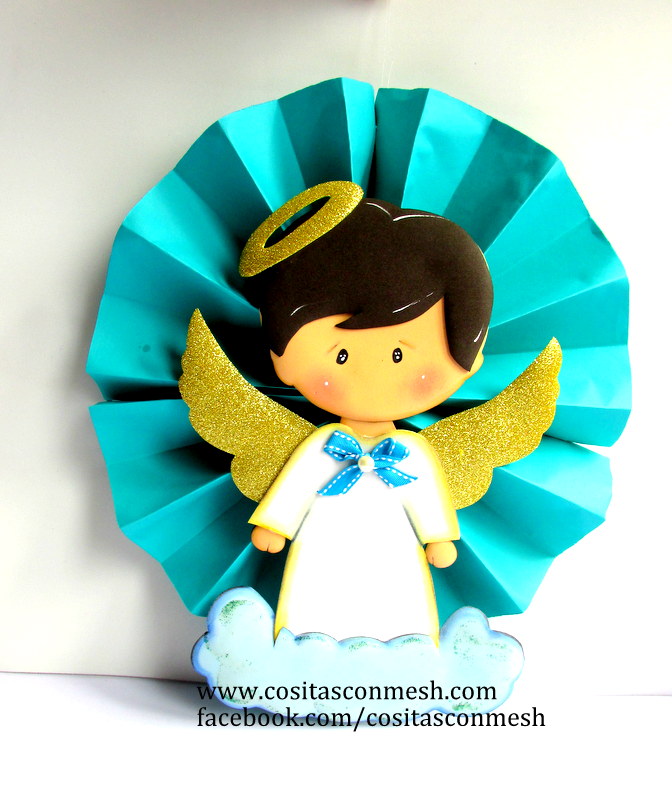 Hola amigos, les cuento que el fin de semana estuve trabajando con mis materiales de foami y cartulina, e hice unos bonitos centros de mesa y adornos para colgar en la puerta o la pared , ideales para bautizo, confirmación o para baby shower, ya que la figura que hice es la de un tierno angelito en la nube.