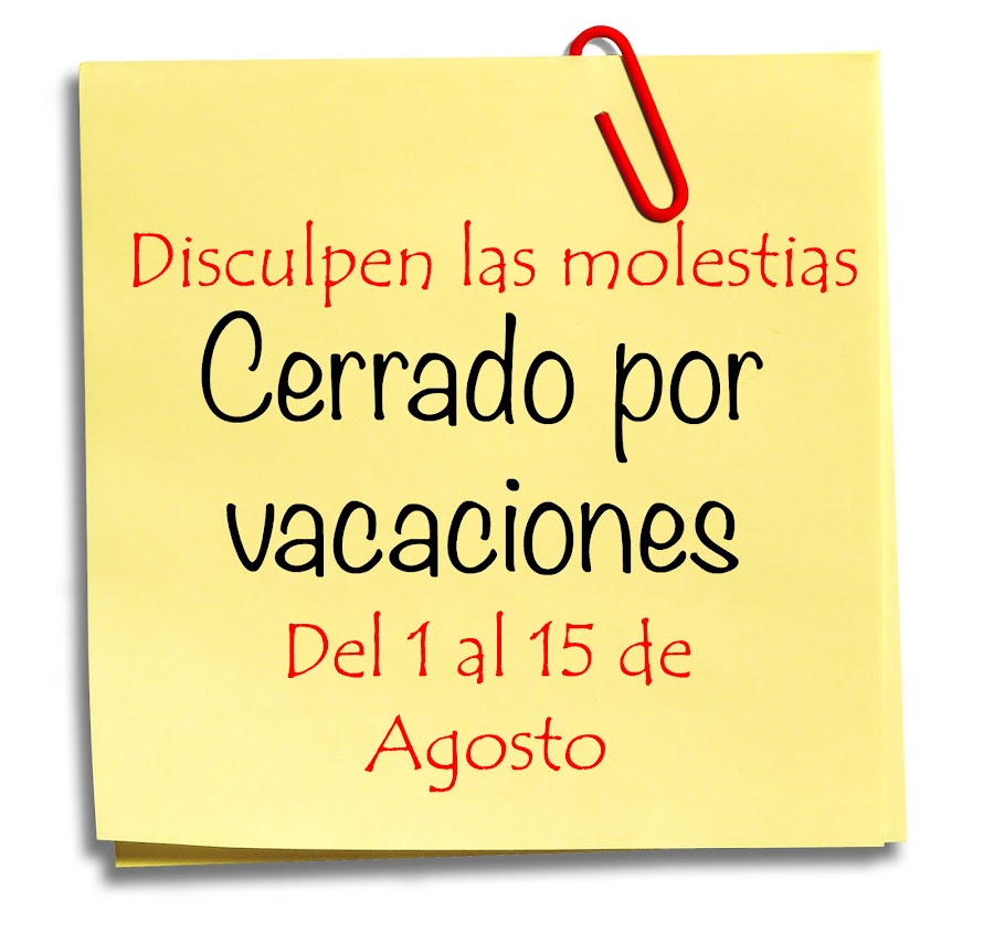 Nuestra tienda permanecera cerrada por vacaciones del 1 al 15 de Agosto
