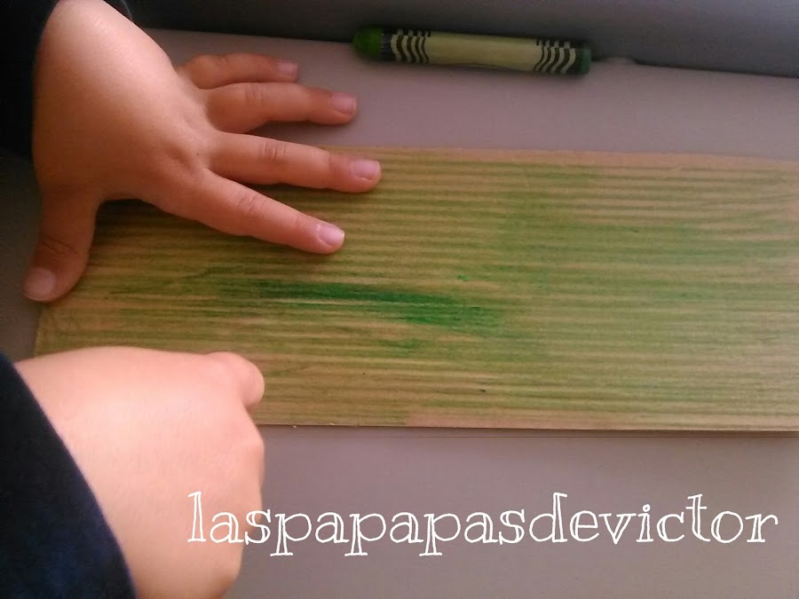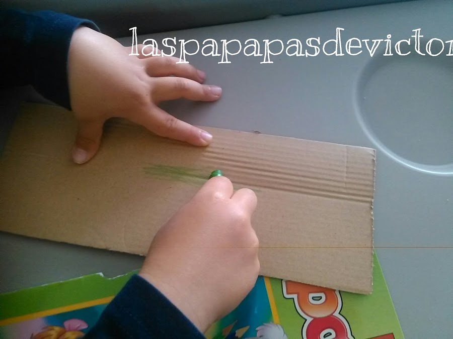 En el trozo de cartón pintarlo de verde para que parezca un césped