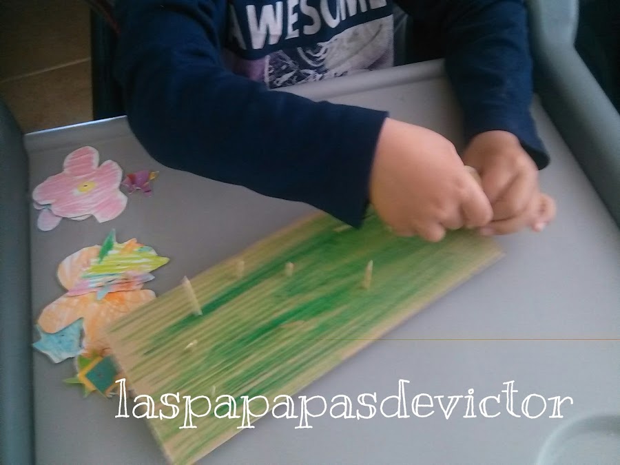 Con los palillos y con cuidado de no pincharse agujerear el césped