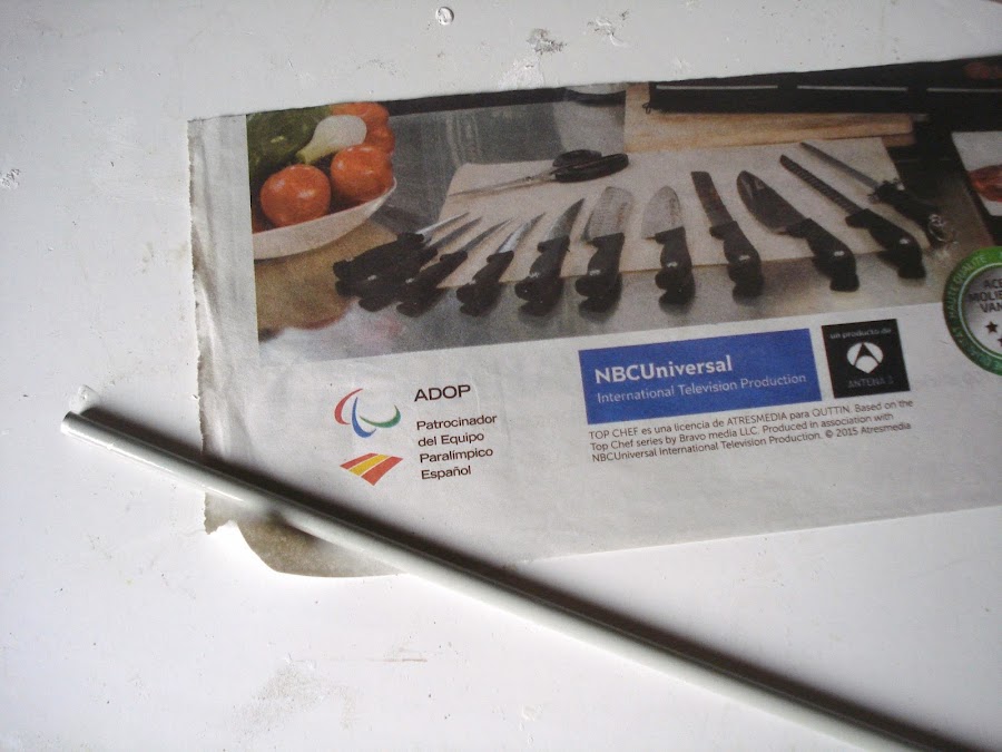 recorto el periódico en tres partes iguales a lo largo.