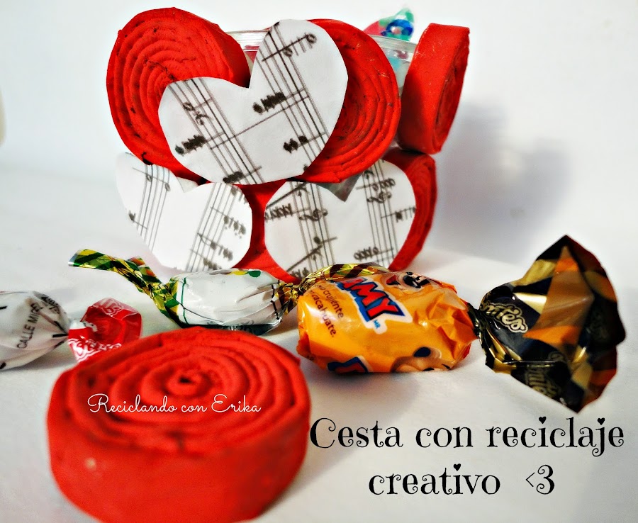 Canasta para dulces con materiales reciclados
