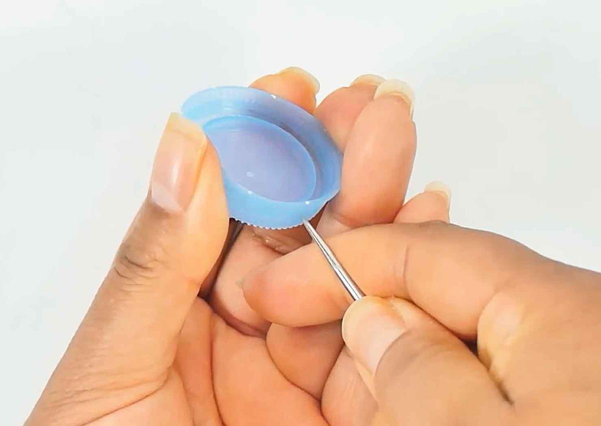 Hacer 4 perforaciones en el canto de la tapa en forma de cruz.