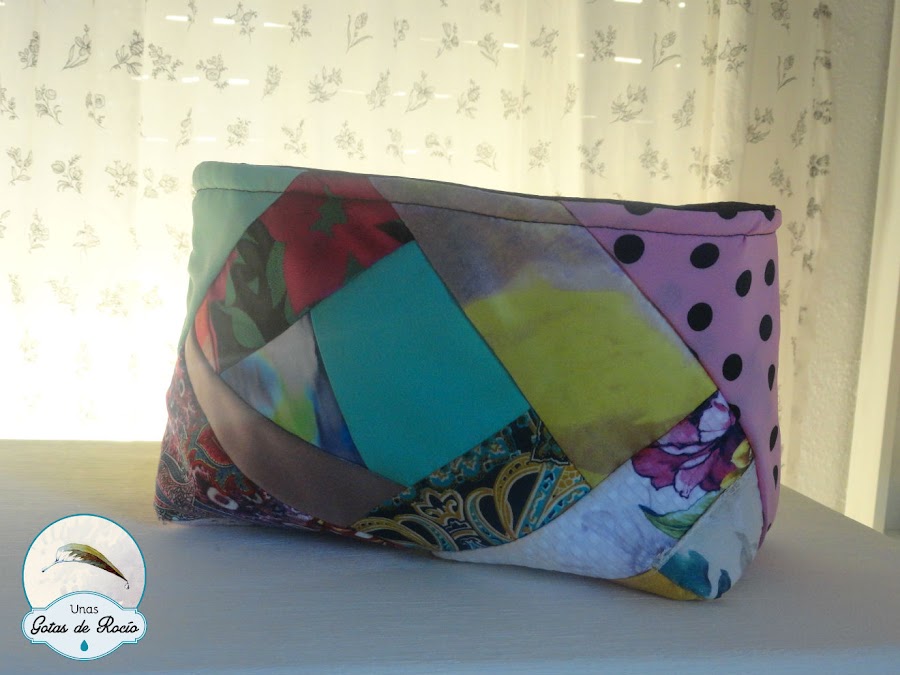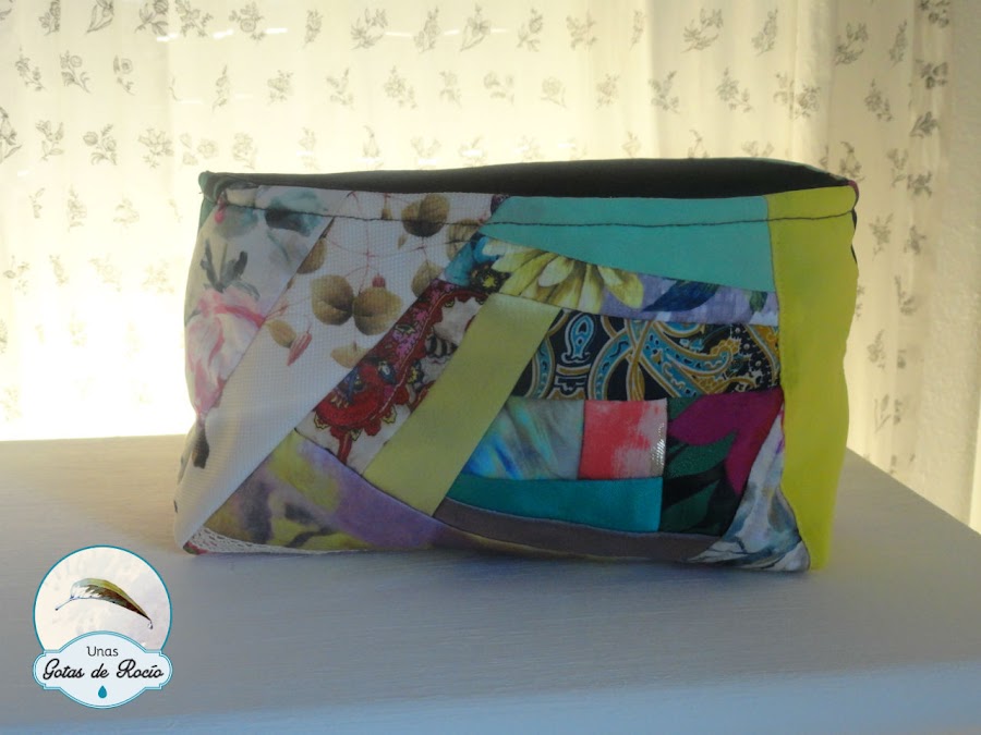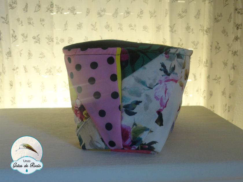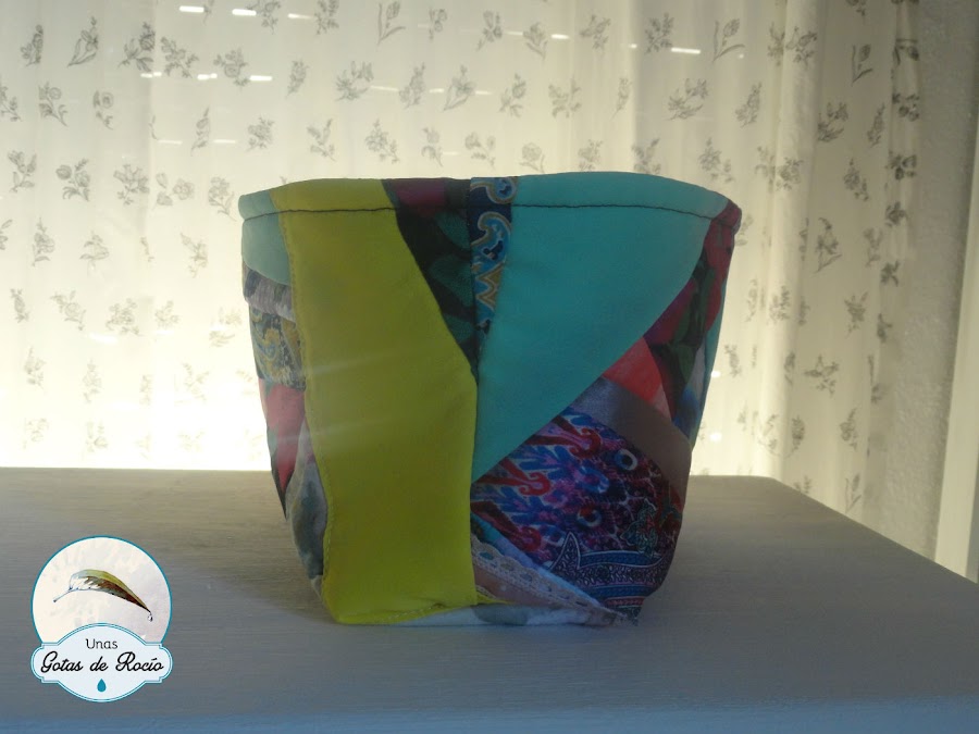 He aplicado la técnica de crazy patchwork y cada lado de la cesta ha quedado diferente.