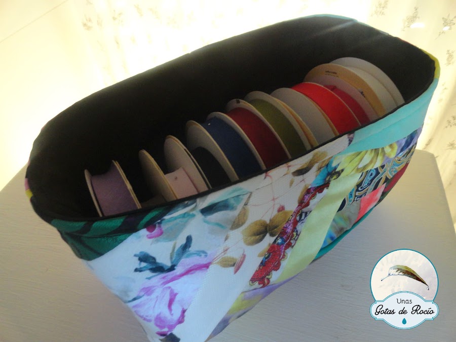 Y aunque la he hecho sin ningún fin específico, los rollos de cintas al bies quedan perfectos, así que muy bien podría ser ese su cometido.