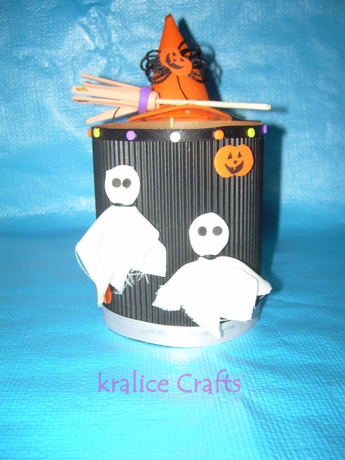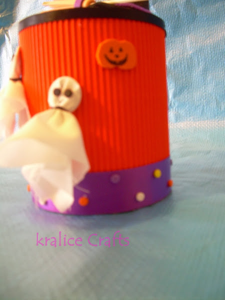 Para el relleno: he puesto chuces, caramelos una bolsita de "fantasmitas" y un trocito de papel de ceda para decorar