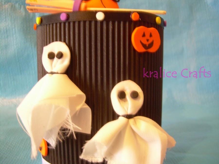 Para el relleno: he puesto chuces, caramelos una bolsita de "fantasmitas" y un trocito de papel de ceda para decorar