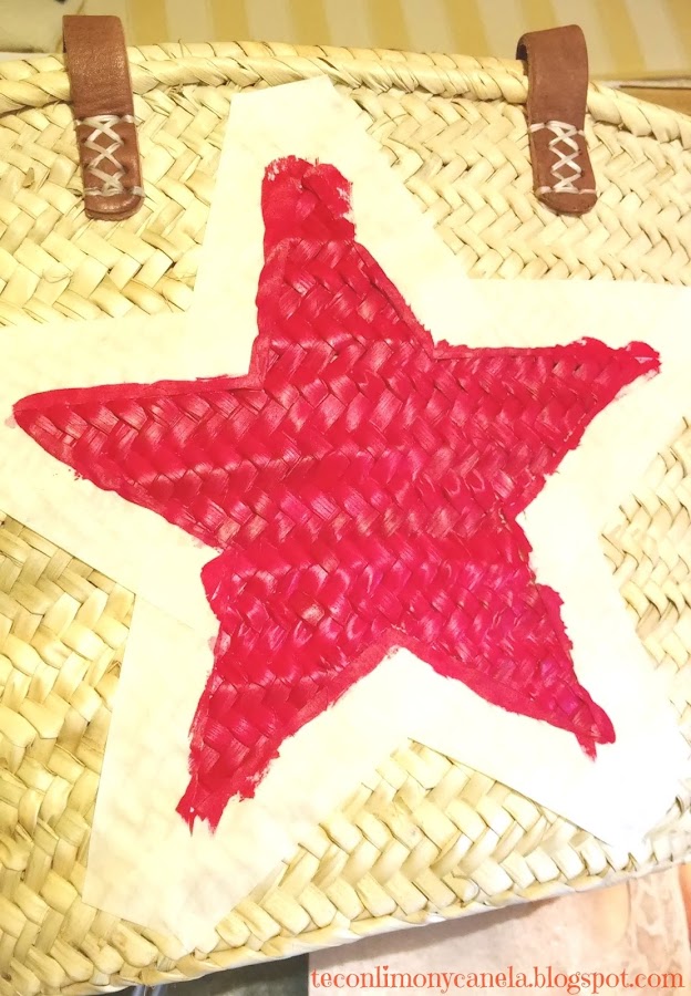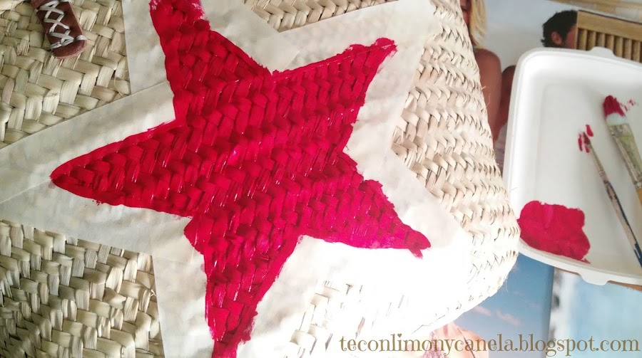 Lo de la estrella, porque me encanta mirar las estrellas. Y el color, aparte de parecerme muy veraniego y alegre, tengo pintura acrílica y textil en rojo. ¿Y textil por qué?, diréis. Pues porque la idea era personalizar unas alpargatas a juego.