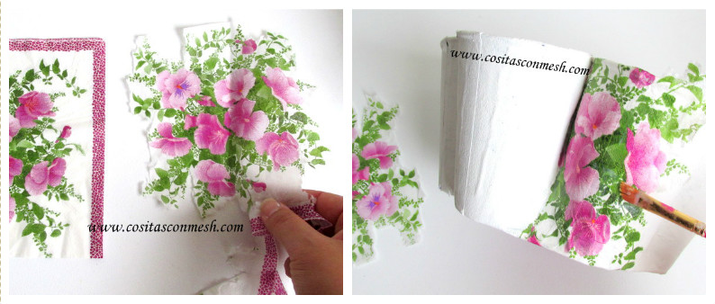 10.-Con los dedos cortare mi servilleta de decoupage, despegare los 2 papelitos que tiene adherido.