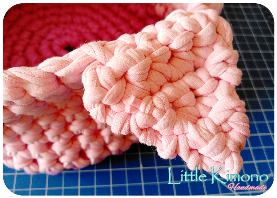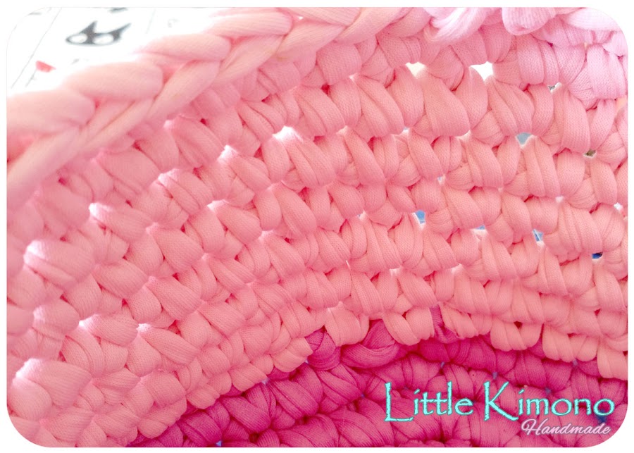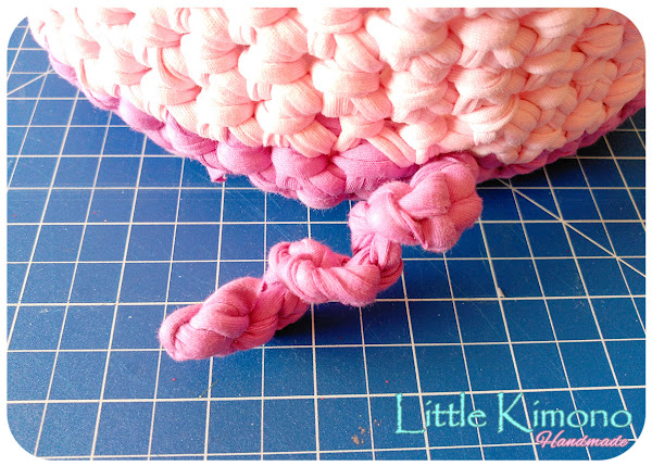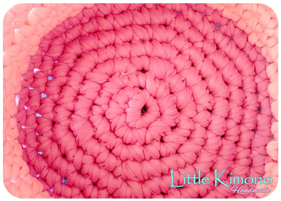 Aguja para trapillo (7-8)Yo decidí hacer la base en otro color (dentro de la gama) para darle un toque más de color, pero podéis hacerla en un sólo tono.