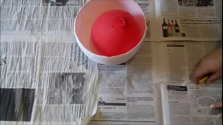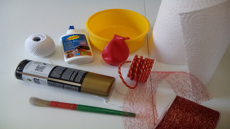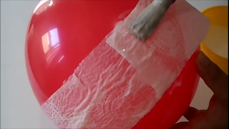 Inflamos el globo y con ayuda del pincel vamos a ir "pintando" poco a poco el globo, de la mitad hacia abajo, y pegamos las tiras del papel de cocina, a la que humedeceremos también con la mezcla y esto hasta cubrirlo, y vamos a repetir la operación de forma que demos un par de capas.