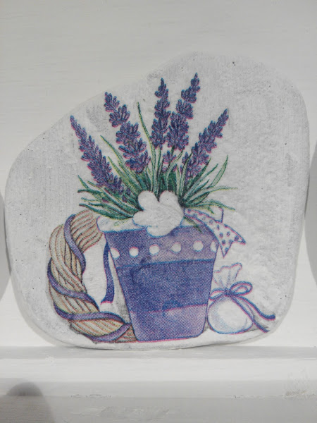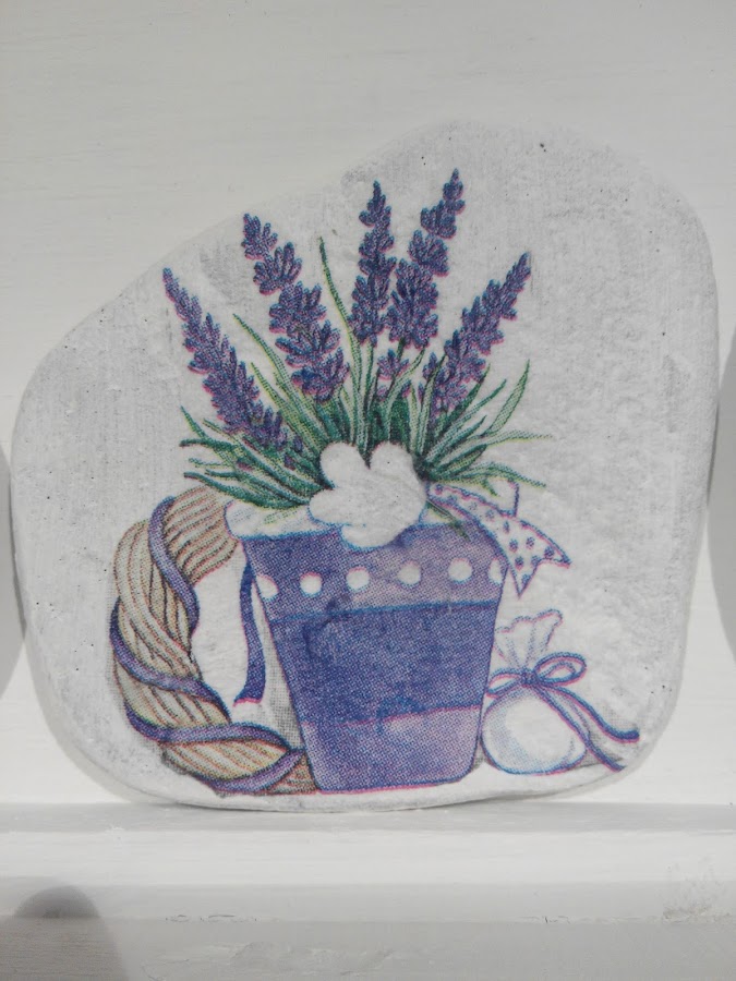 Va pintada con pintura de acabado en tiza y luego, con la técnica de decoupage, se adorna con las servilletas como más nos gusten. Quedan preciosas y muy originales. No tengo muchas fotos, pero os la enseño...
