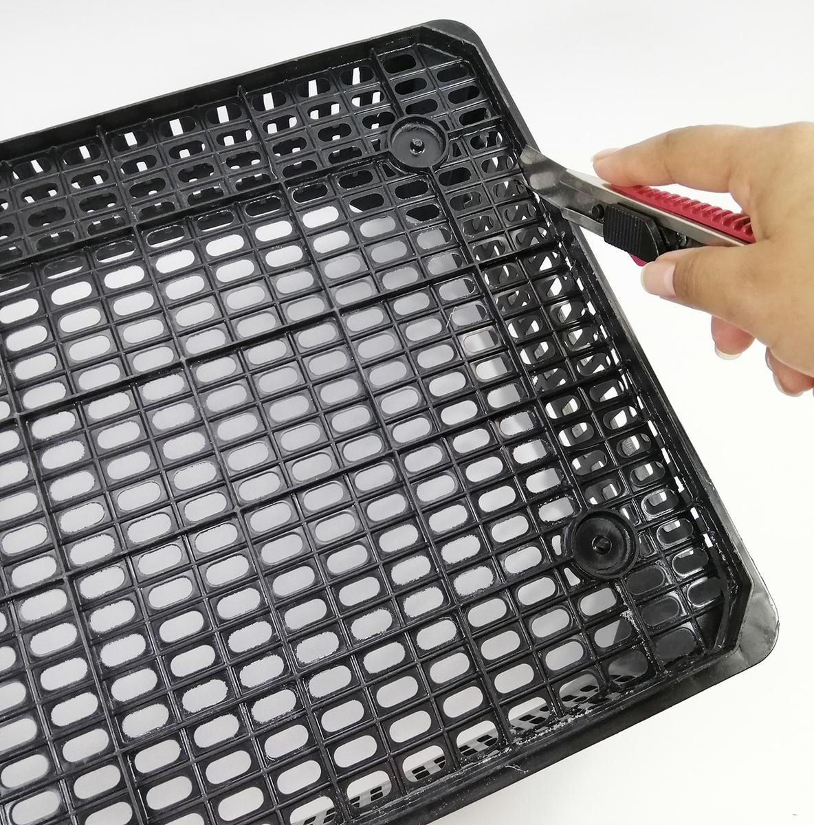 Corta la altura de la última caja plástica usando una segueta o sierra.