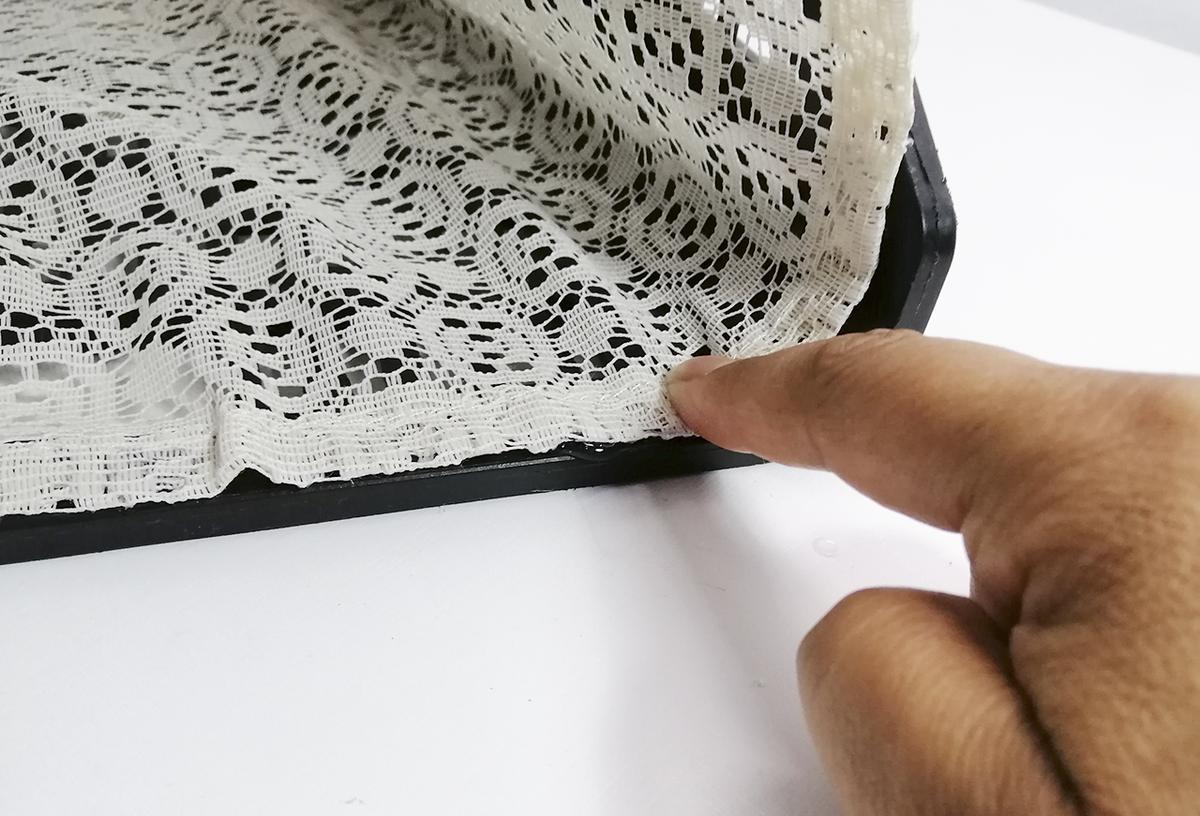 Fórrala con la tela igual que la caja grande.
