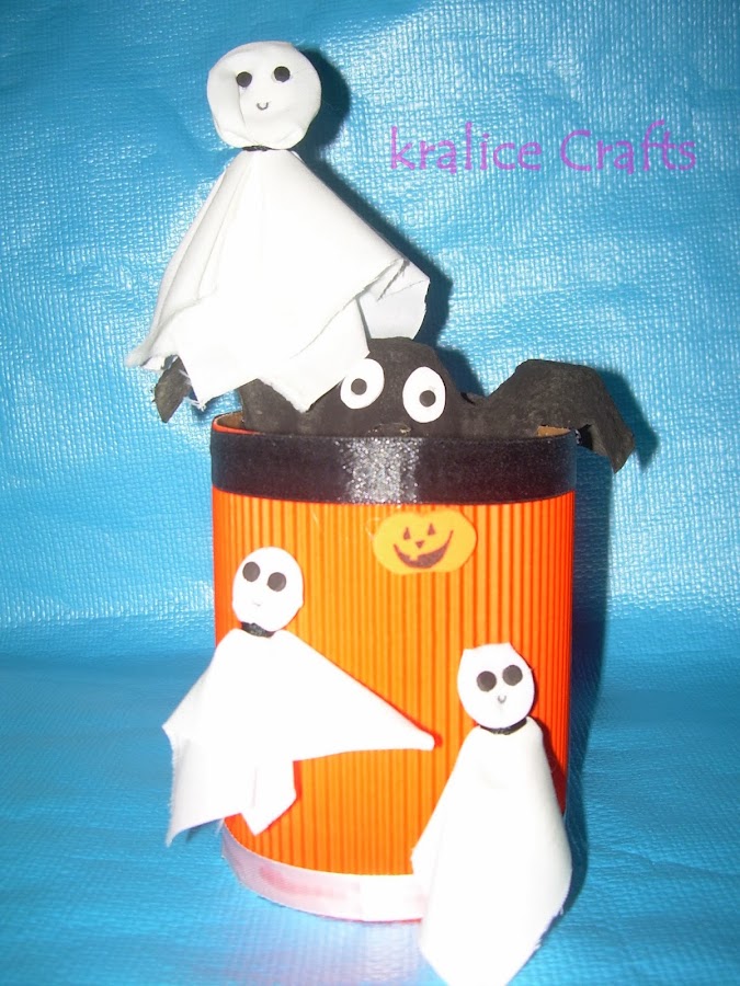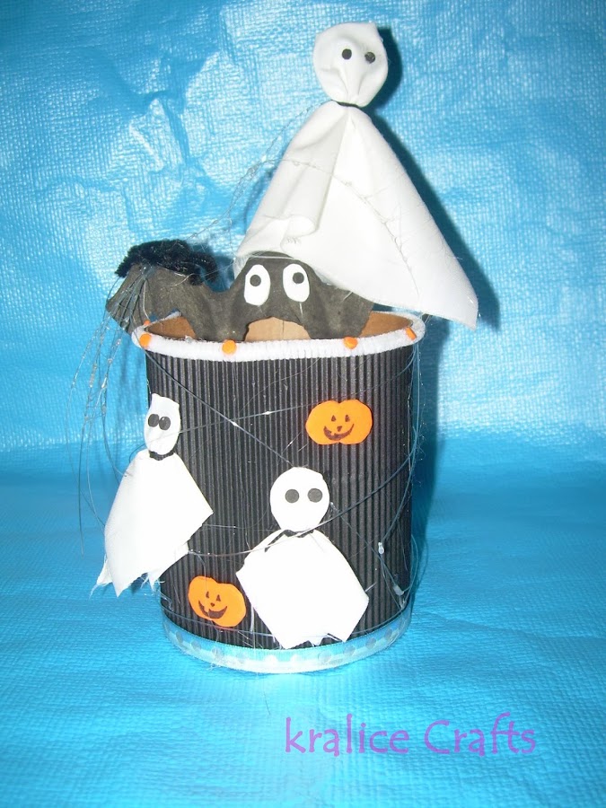 He hecho esta cesta pensada para niños y para darle un ?toque? mas infantil e dibujado una carita sonriente en los fantasmas.