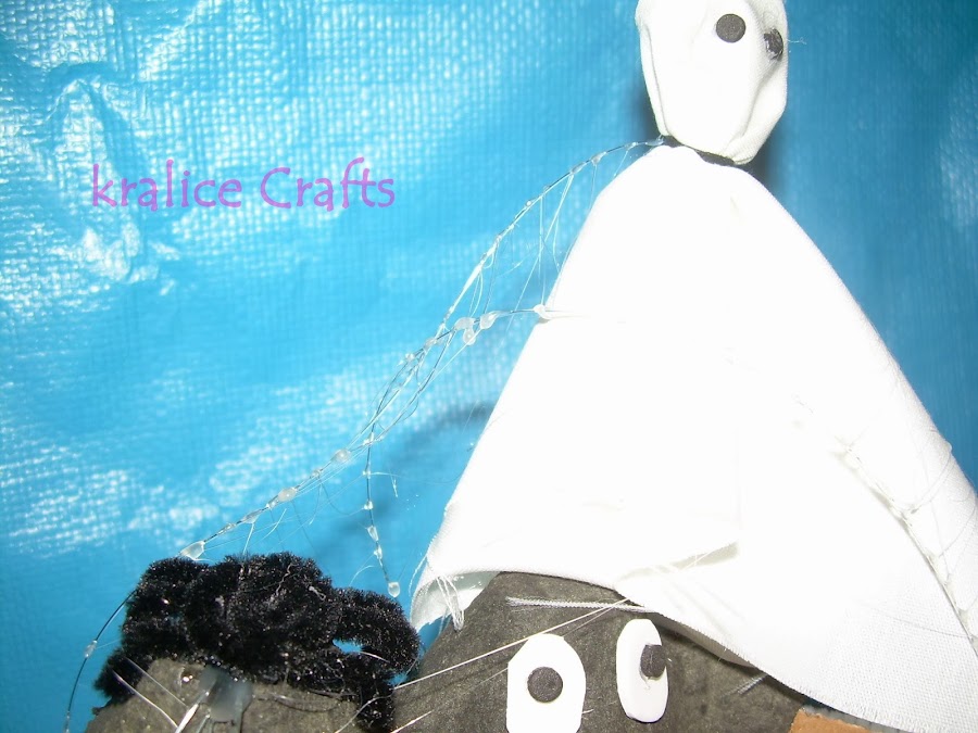 La tela de araña la he hecho como he dicho antes con el hilo de pescar pero también me he ayudado con la pistola de silicona para los hilitos mas delgaditos para rellenar y darle forma a la tela de araña valga la redundancia