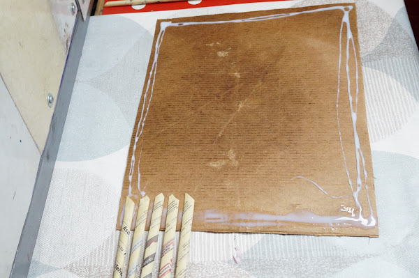 Esto lo realizaremos en todo el contorno del cartón y dejaremos secar, puedes apoyarte con pinzas de ropa u objetos pesados para que no se despegue mientras seca.