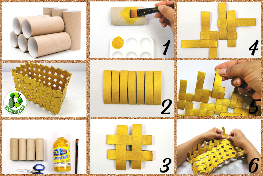 El resto del proceso es un más complejo de explicar, pero les dejo el video tutorial, donde está bien explicado como hacer ésta cesta con tubos de cartón o tubos de papel higiénico.