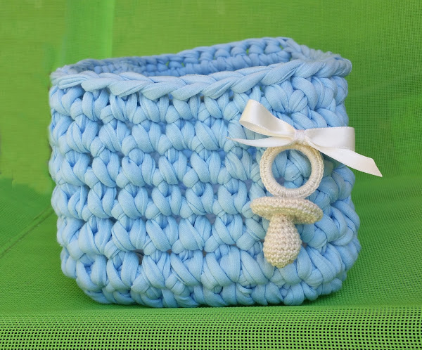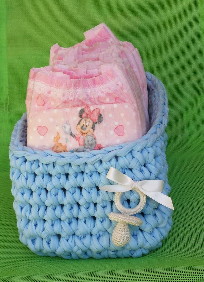 Aquí de nuevo con otra cesta hecha a ganchillo XXL o trapillo. Esta vez es para guardar los pañales del bebé. Práctica, bonita y fácil de hacer, ¿a qué esperáis? Manos a la obra.