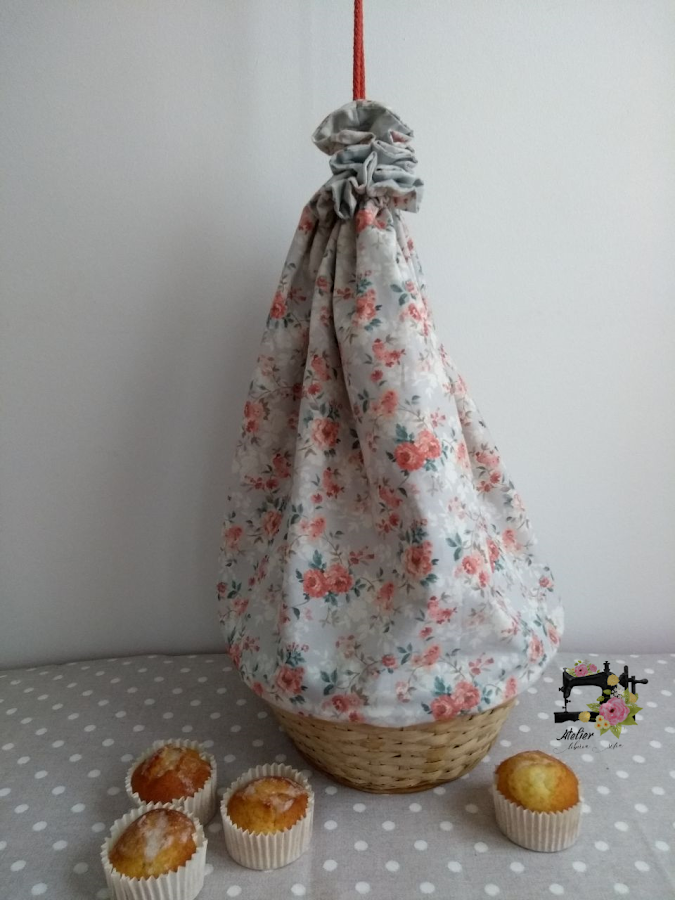 Ya terminado el pespunte del dobladillo, ponemos el derecho de la tela exterior enfrentado a la cesta.