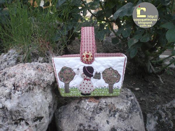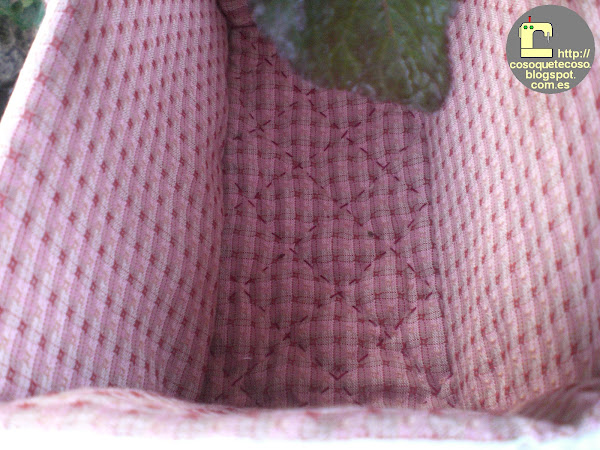 Para el interior usé una tela japonesa, comprada en Telas y Tentaciones, que me parece ideal, fijaos como cambia con el acolchado.