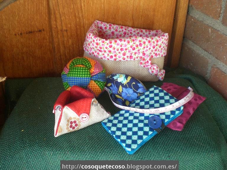 Quería algo representativo del blog: un metro con su funda, un portadedales, una miniminicesta, un tarjetero y un portapañuelos.