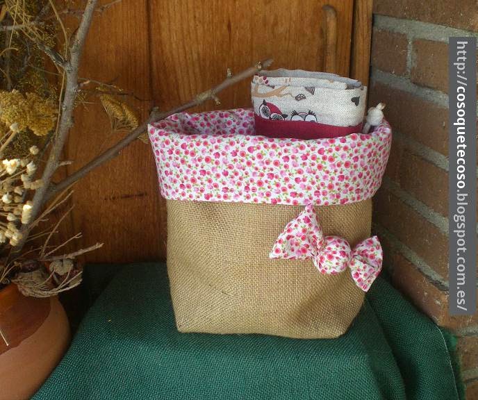 Pero dentro, iba alguna cosita más, otra mini cesta de arpillera en color crudo, yo la he bautizado "modelo comunión" porque las primeras las hice de encargo para ese evento.