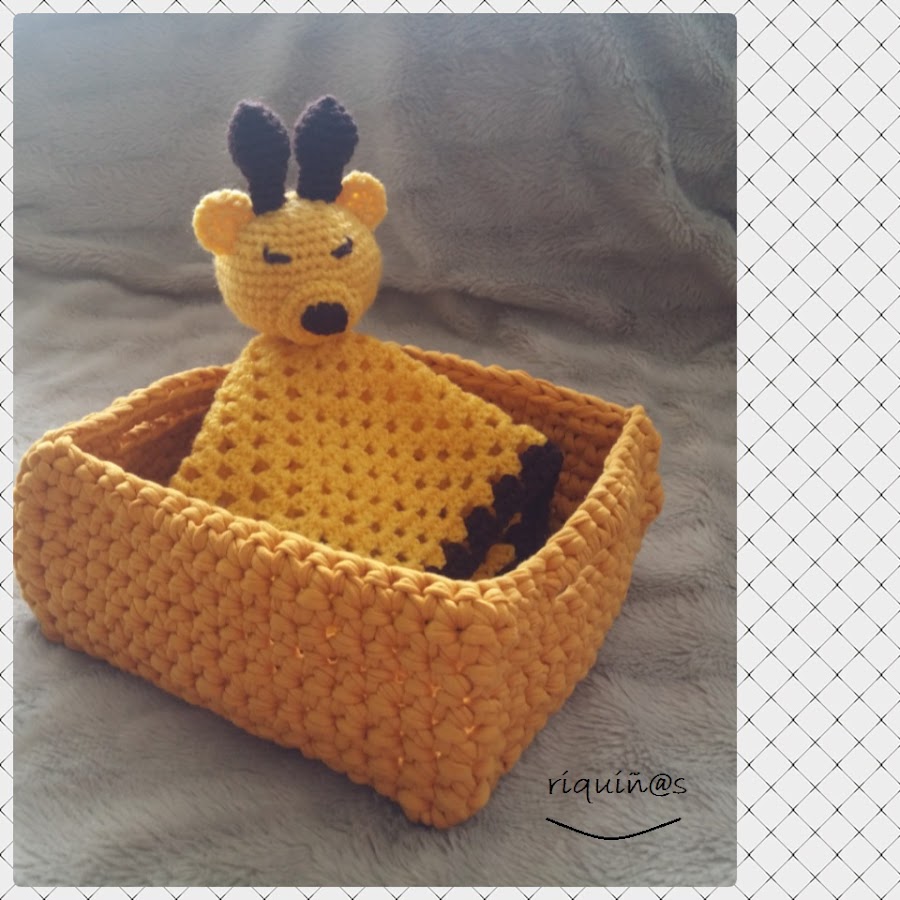 Cesta realizada en trapillo amarillo. manejable y blandita, ideal para organizar las cosas de nuestros peques, totalmente personalizable, sólo tienes que elegir el color.