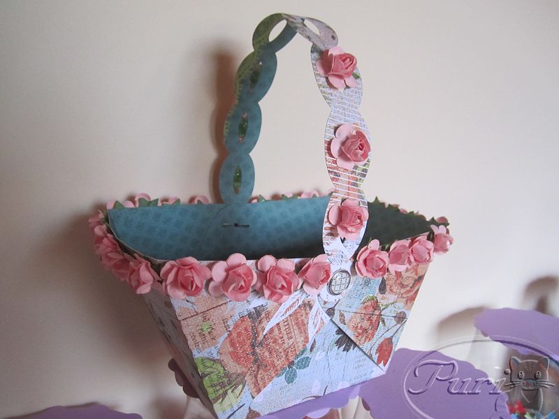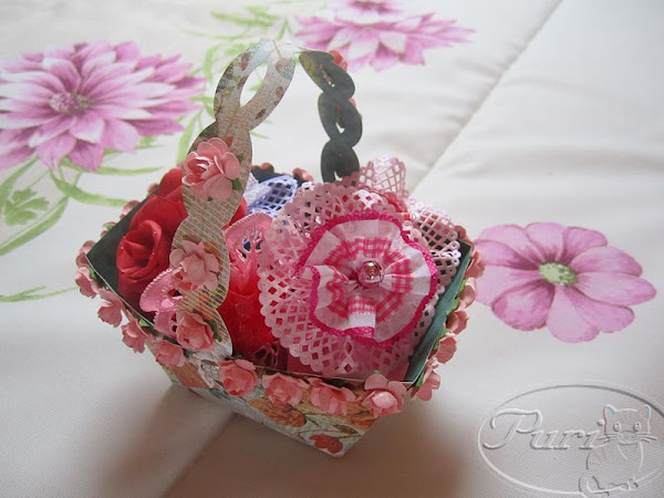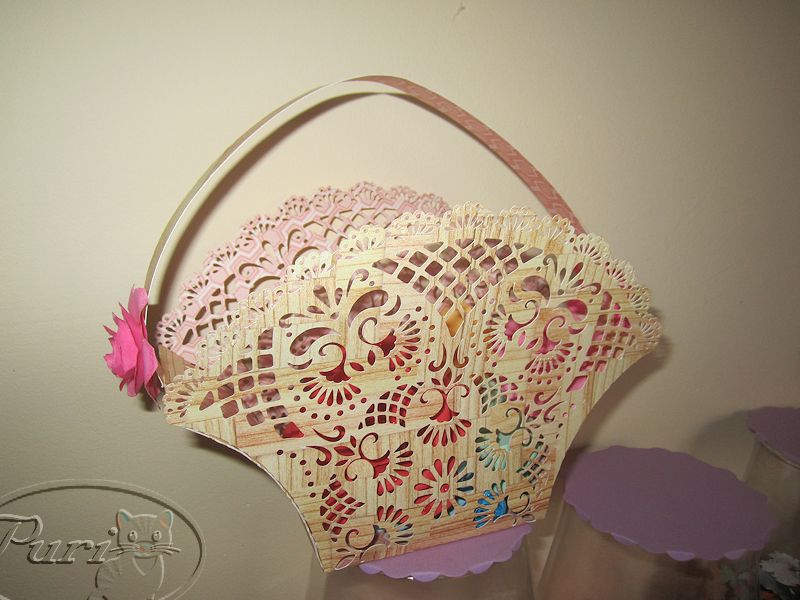 Estas cestitas las he cortado con mi cameo en papel de doble cara de corado...las flores que estan dentro tambien son casi todas realizadas por mi...