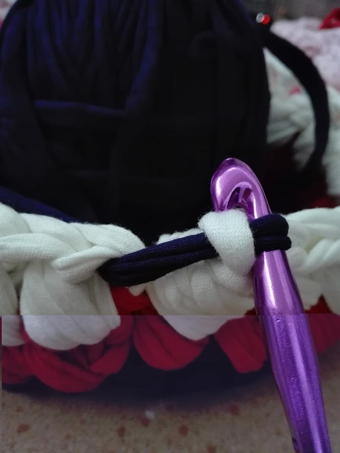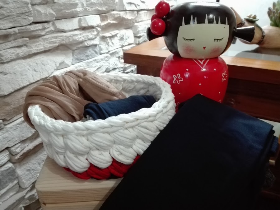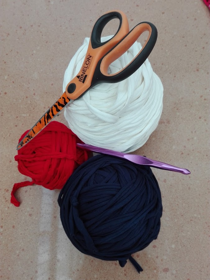 Hilo de trapillo en el color que prefieras (si utilizas varios colores te quedará muy bonito y podrás aprovechar los restos que hayas guardado)