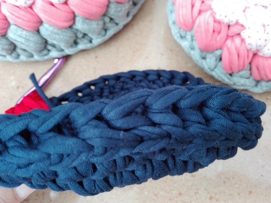 Asegúrate de que la base permanece plana. Dependiendo del hilo que hayas elegido y de cómo tejas (muy prieto o más flojito), puede que la base del cesto no quede perfectamente plana. Si es tu caso, costará un poco más completarla. Si notas que la base está quedando desigual, reduce la cantidad de puntos que estimes apropiada.