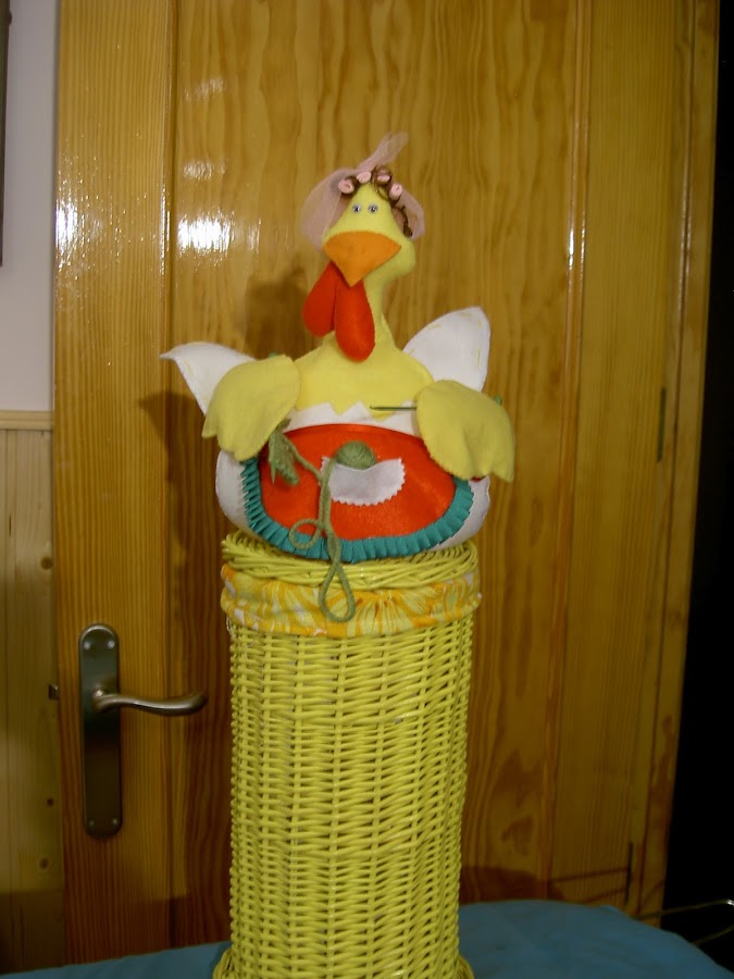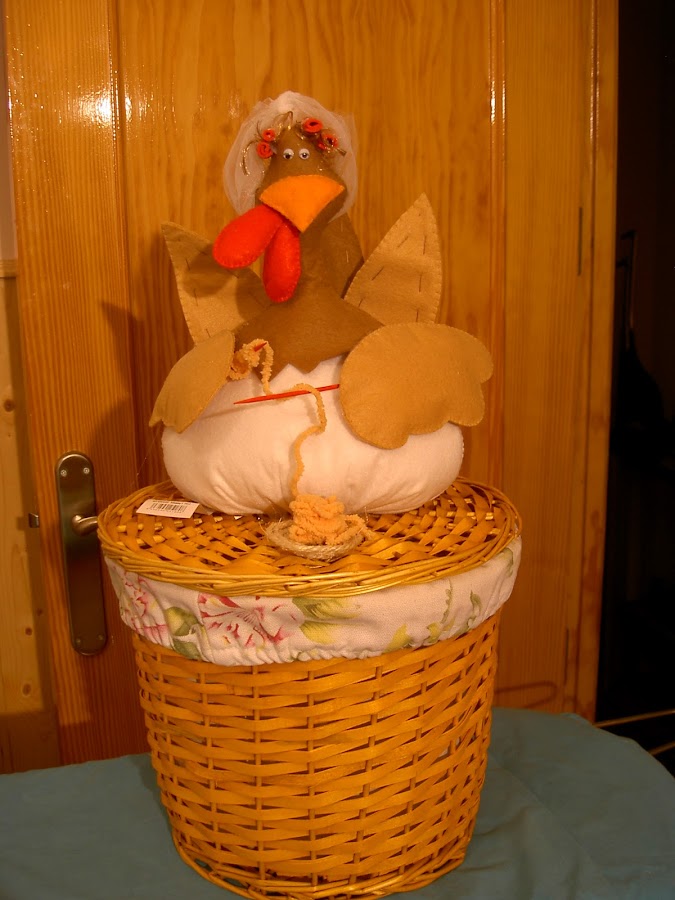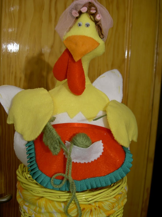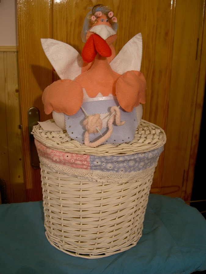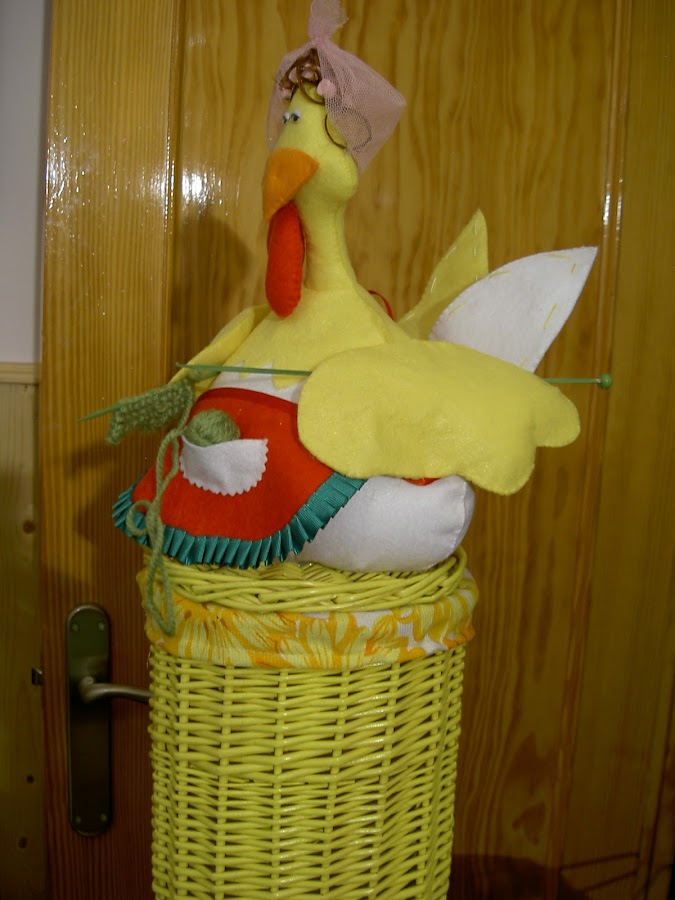 Mirad que simpaticas gallinas.....estan haciendo punto....son unas cestas decoradas con las gallinas que nos serviran para guardar nuestros ovillos de lana