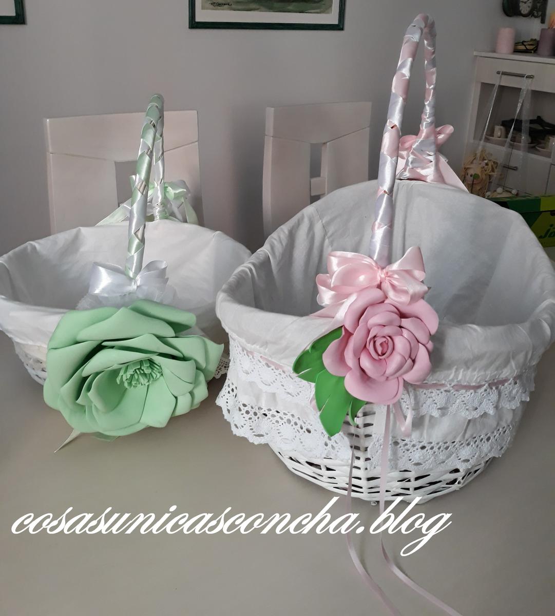 En estas cestas puse las muñecas de Triana para regalarlas en su comunión.