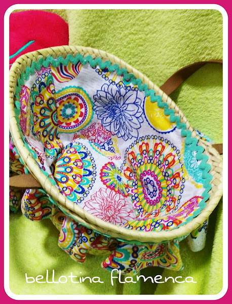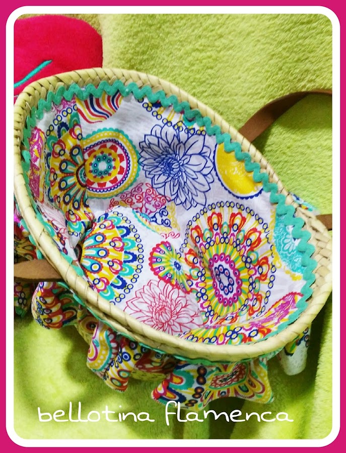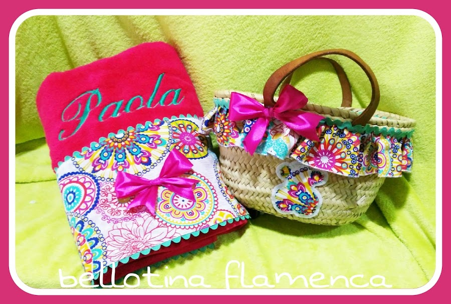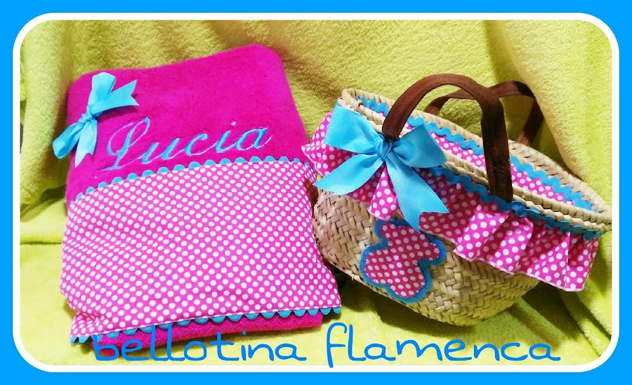 En tela color celeste con adornos en color negro y rojo. Una bonita combinación que se va para Tenerife.