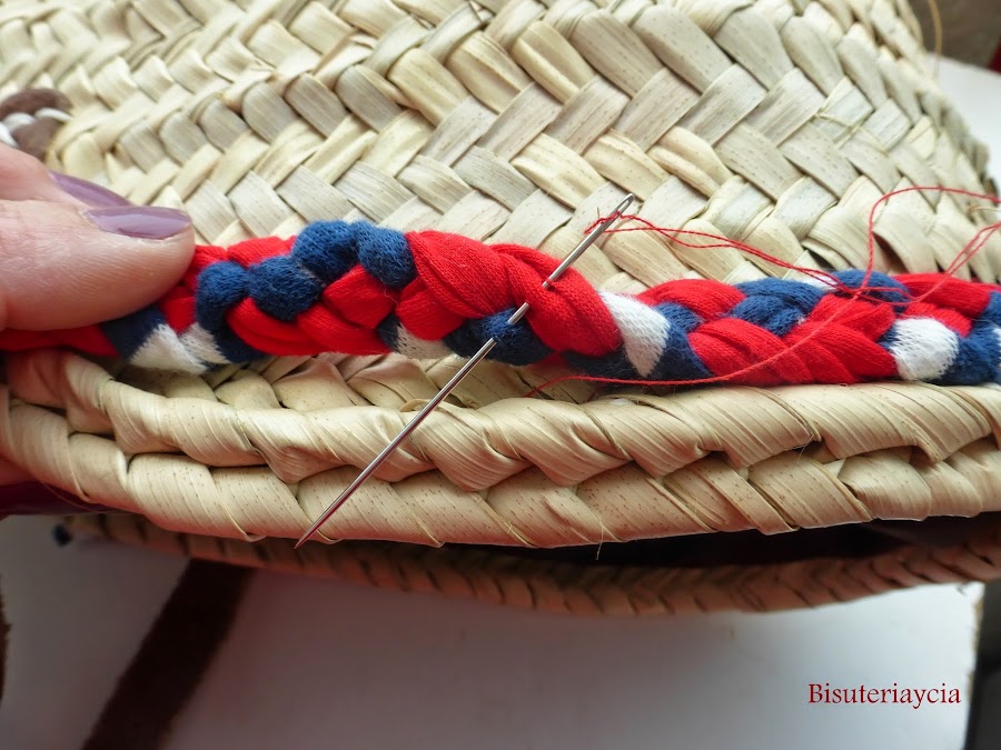 Una vez tengamos la trenza y las estrellas es hora de coserlas al capazo.