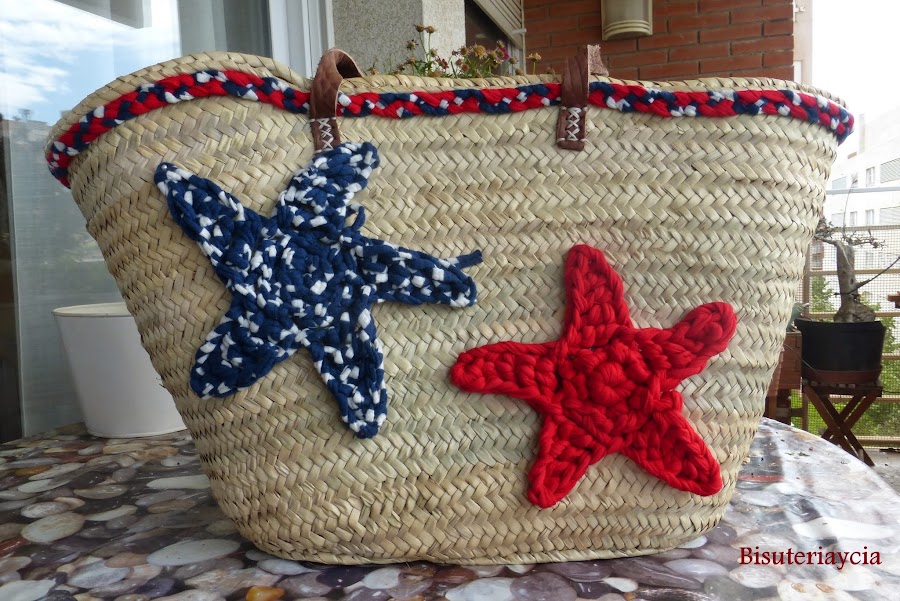 ¿Que os parece? Hacerlo es muy fácil. Para ello vamos a necesitar un cesto y trapillo. Empezaremos haciendo una trenza para adornar la parte superior de nuestro capazo y después haremos unas bonitas estrellas, todo ello hecho con trapillo.
