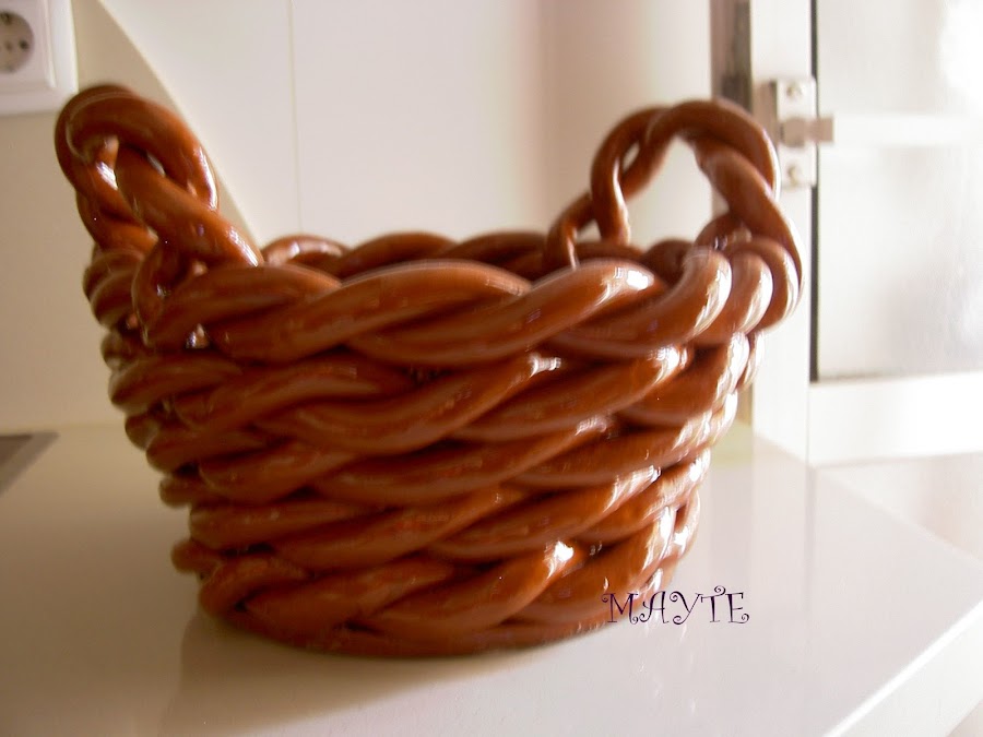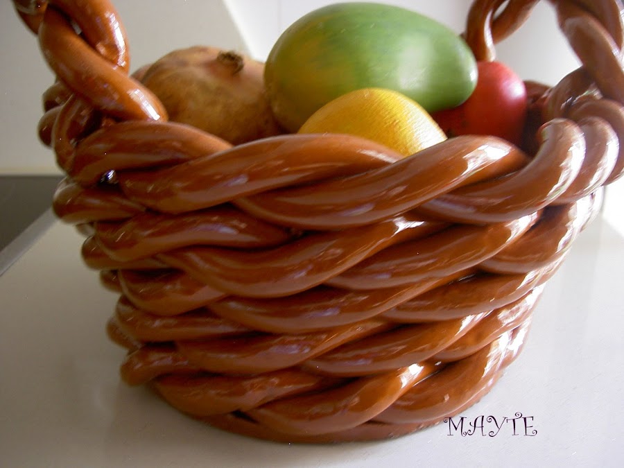 Esta pieza es un cesto trenzado ---biem para adorno o biem nos pueda servir como frutero o cesto para la costura etc....
