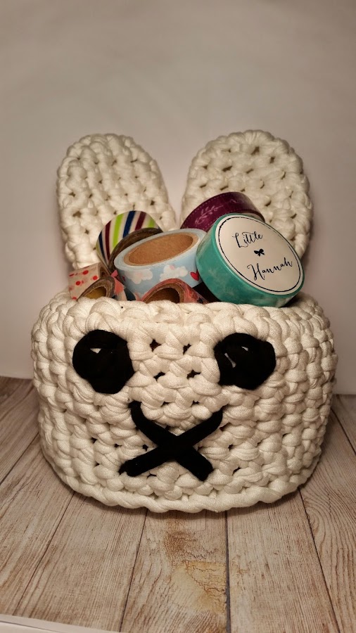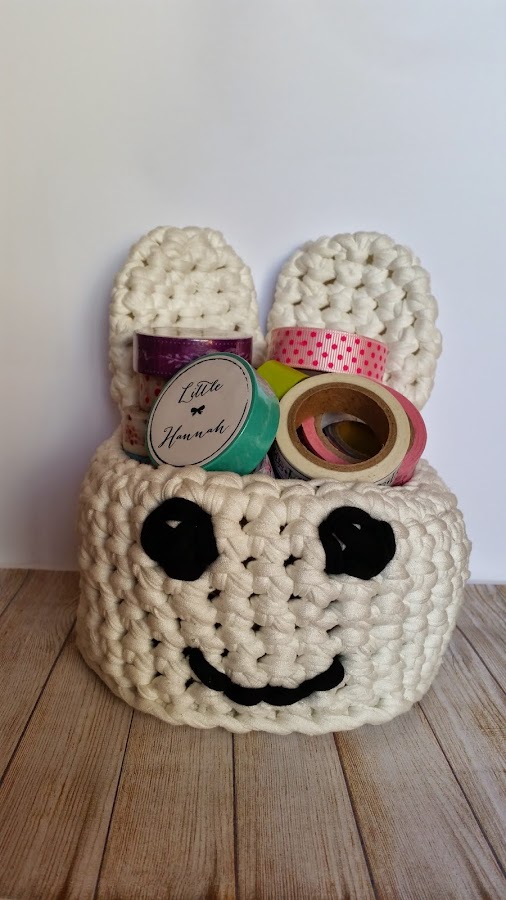 Lo hice hace un par de semanas, pero por cuestión de tiempo en el blog no lo he enseñado antes, ya que quería que vieses ciertos posts antes. Se trata de un cesto conejito con una carita muy simpática.