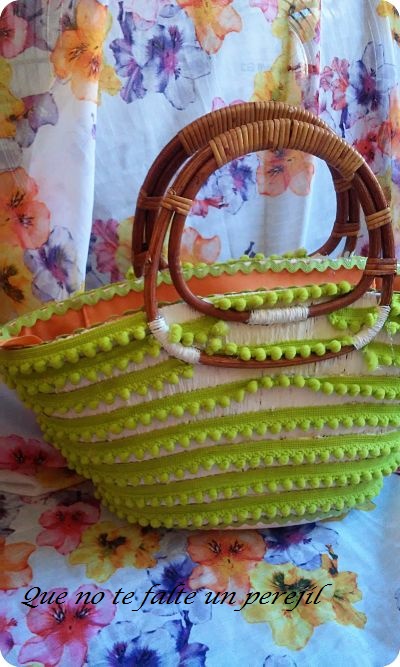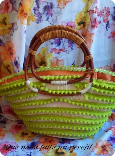 Os enseño , para empezar, este cesto pasado de moda y que ya no me parecía tan bonito . Así quedó después de pintarlo con pintura a la tiza y decorarlo de esta manera tan vistosa y veraniega.