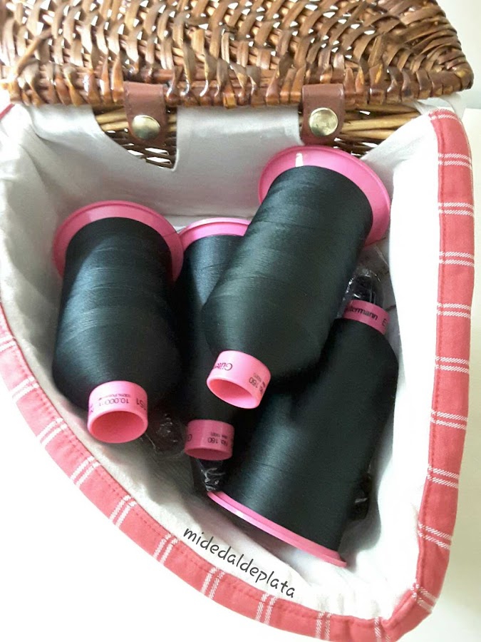 Y en mi taller, guardo los conos de remallar en una cesta que centra su atractivo, además de en la funda hecha por mi Madre, en su peculiar forma.