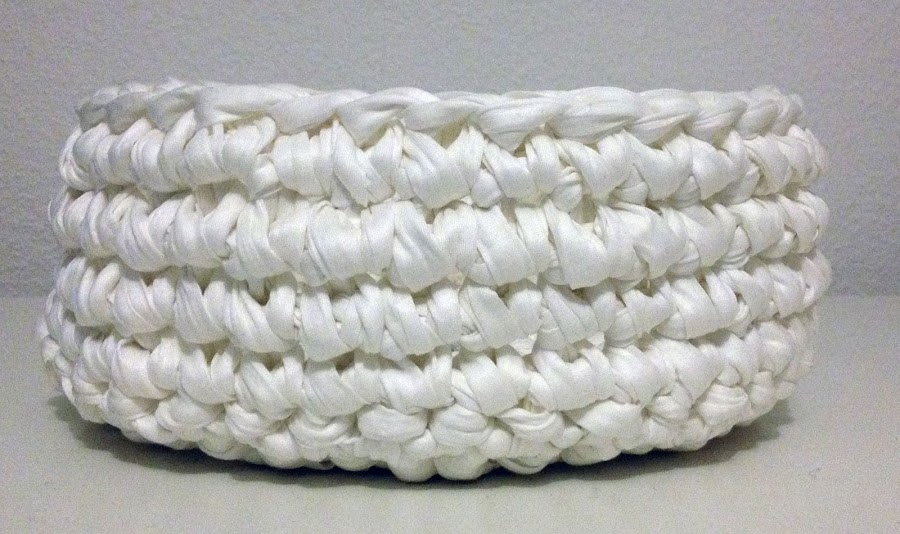Para ello he utilizado un trapillo blanco genial, que no lleva nada de lycra y es todo algodón. Esto ayuda a que las paredes del cesto no se caigan ni se deformen.