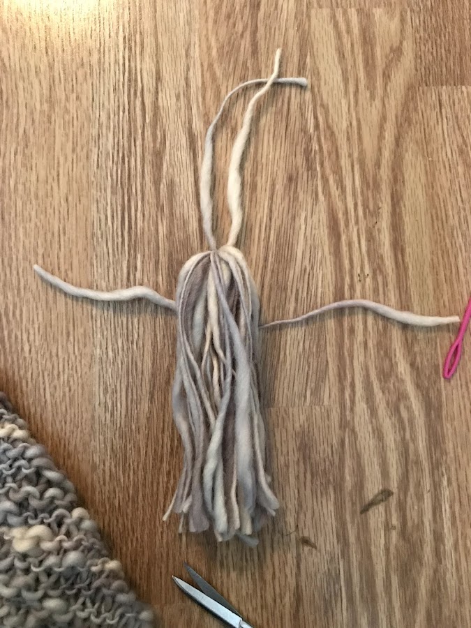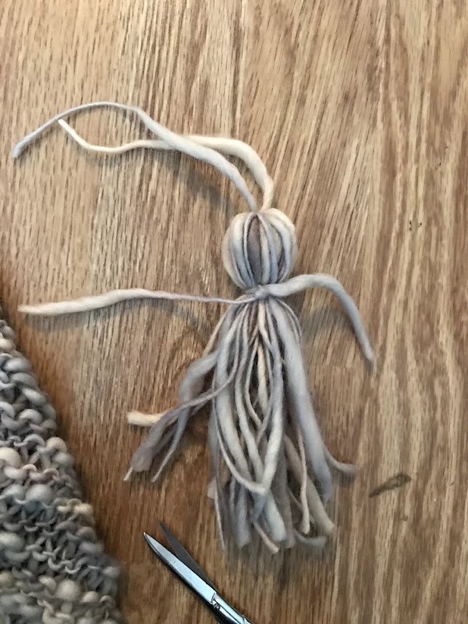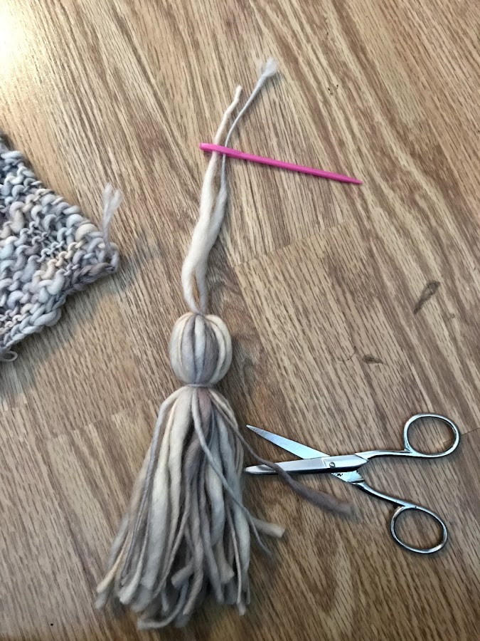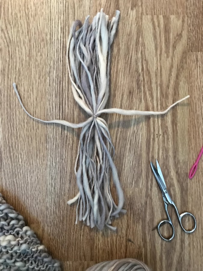 Con otra hebra atamos para formar la "cabeza" de la borla.