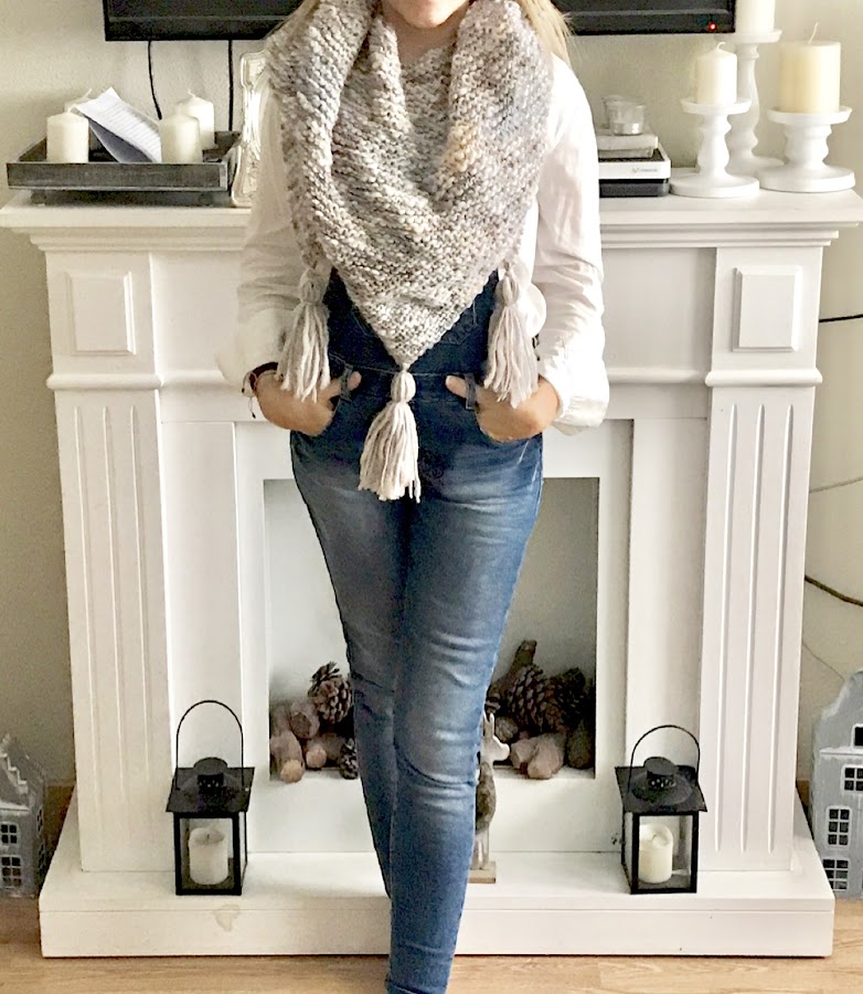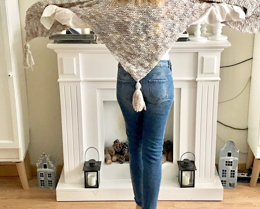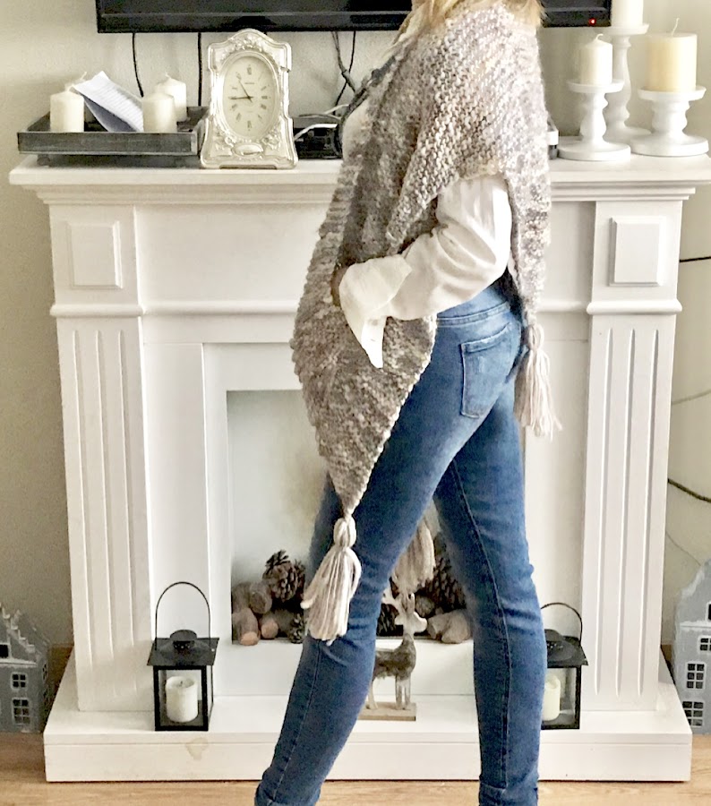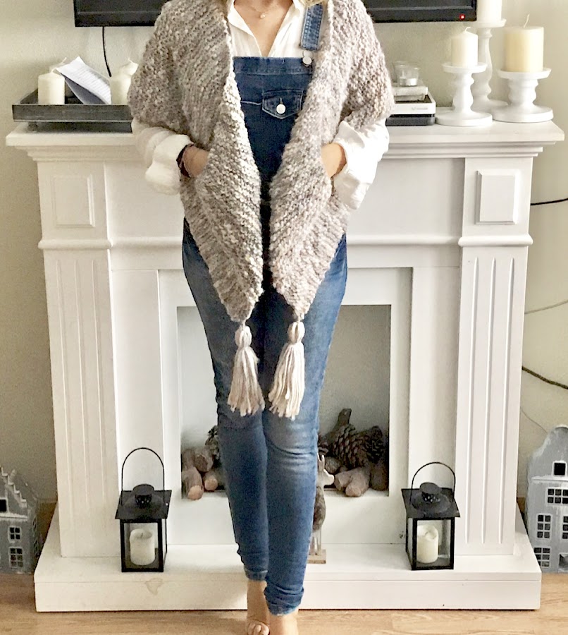 Lo he llamado "chal false cardigan" porque es una prenda muy versátil que se puede llevar de tres maneras diferentes:
