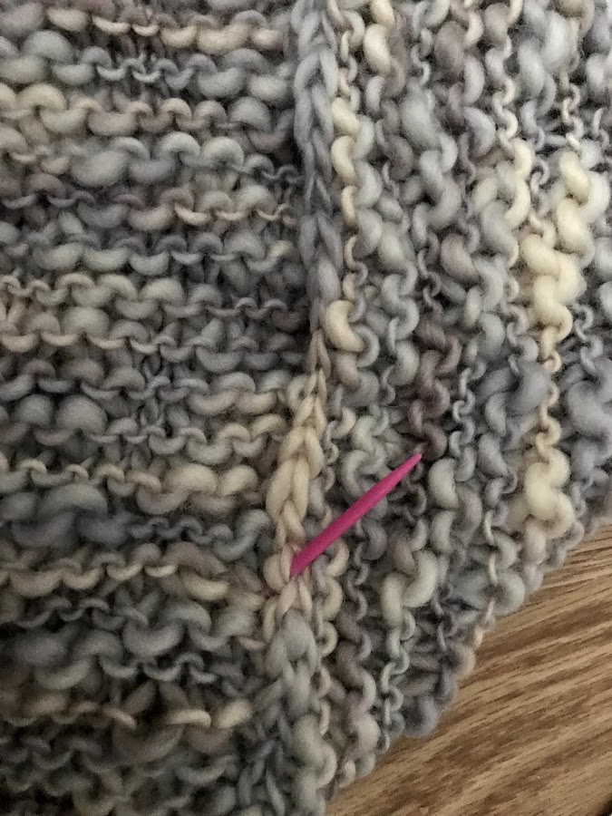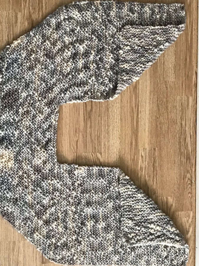 Toda la prenda se teje a punto bobo (todas las vueltas a punto del derecho).