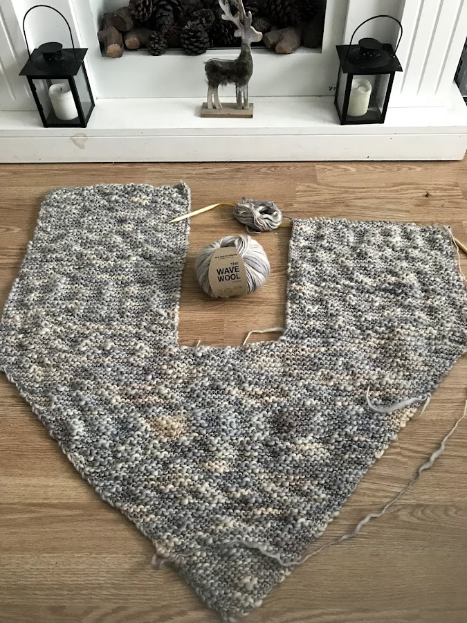 Lo tejí con lana The Wave de We Are Knitters, una lana que tiene la particularidad de tener una hebra irregular (desde lo más finita hasta un grosor para agujas grandes) lo que hace que al tejer se vayan formando unas ondas muy chulas. Además de que tiene un tacto súper suave.