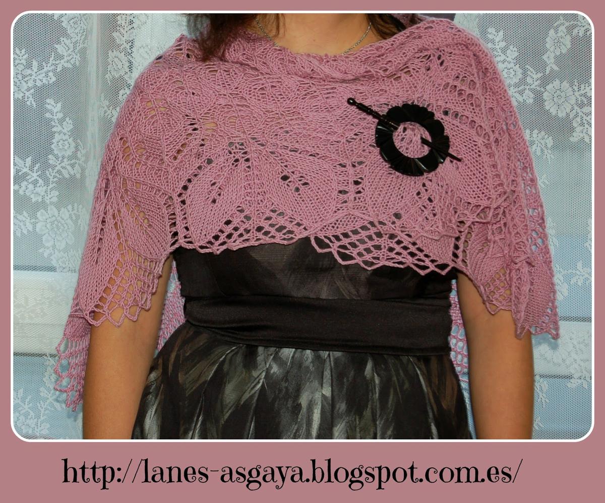 ¡Qué chal más bonito, me ha encantado! Era uno de esos miles de patrones agazapados, esperando la oportunidad de salir.... Y no desaproveché la oportunidad. Lo cierto es que me equivoqué al coger el color para el mini chal que me habían encargado (AQUÍ) y decidí quedármelo y hacerme uno para mí. Y terminado justito a tiempo para estrenarlo en Nochevieja
