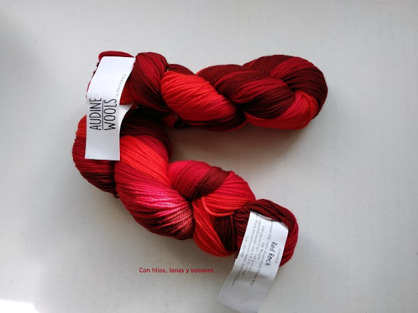 No estuve suscrita mucho tiempo, la verdad, creo que sólo tres meses, pero en ese tiempo recibí unas madejas preciosísimas. En una de las cajas venían dos madejas de Audine Wools Superwash DK en color Red Rock. No os voy a engañar, cuando las saqué del paquete no me emocionaron demasiado. Es lana 100% merino, super suave, sí, el tacto es espectacular. No pica nada de nada lo cual hace que esta lana sea ideal para cuellos y bufandas. Pero el color.... pues eso, el color no me enamoró. La lana hace un degradado en tonos rojizos, pero es un degradado super marcado que da lugar a rayas en el tejido. El tono más oscuro es muy oscuro y el claro es demasiado claro para mi gusto. Ojo, es mi opinión personal y sólo vi las madejas en rojo. En cada caja venían además dos patrones, uno para un proyecto de calceta y otro para un proyecto de ganchillo. Pero me pasó lo mismo, ninguno de los dos patrones me enamoró. Así que las madejas se quedaron guardaditas a la espera de su turno.