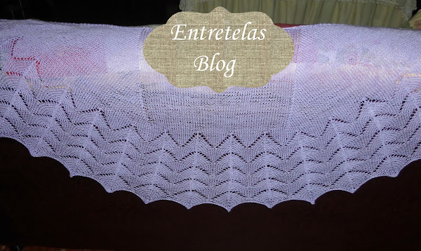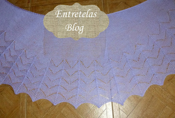 Este es un chal más grande que los habituales que hago y de color lila, las fotos son infames ...perdonad
