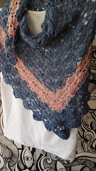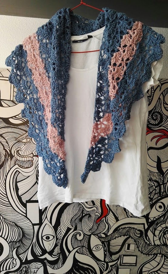 Hoy os traigo un chal de algodón perfecto para la primavera y muy fácil de hacer , os confieso que me encanta mirar patrones pero no me animaba hacer ninguno por que me parecía más complicado, aunque realmente es muy sencillo .