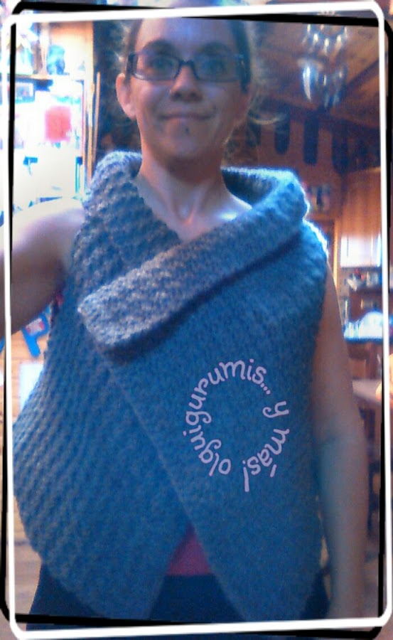 Cómo me ha gustado hacer este chaleco, sobre todo porque es la primera prenda de vestir que hago que no es un complemento. Y el punto me gusta mucho en esta lana tan amorosa y suave. Estoy pensando en ponerle una flor, también tejida, aunque aún no he decidido cuál. Se aceptan sugerencias